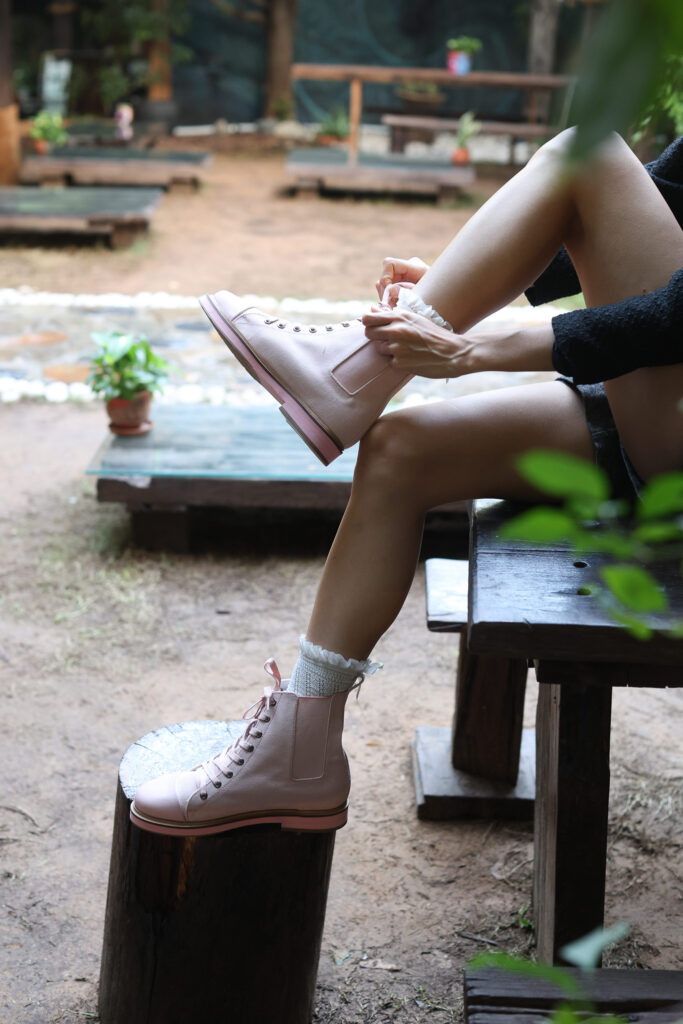 This pair is part of the larger flagship capsule collection titled ‘Heart & Soul’. Inspired by the footwear revolution; this leather top, canvas body pair of shoes is a statement tucked underneath a pair of jeans. The boots have the classic elastic sides in a complimenting hue. The signature style was designed as a quiet addition to your ensemble.